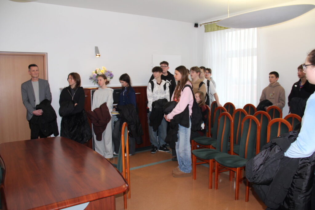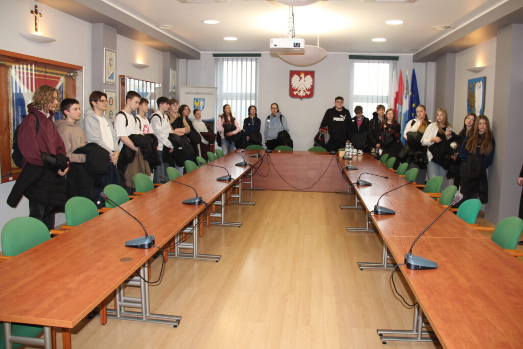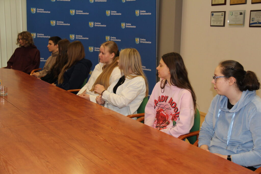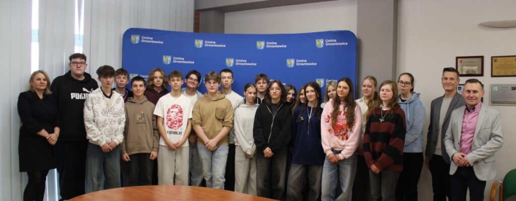 W dniu 4 lutego grupa dwudziestu ósmoklasistów Zespołu Szkolno-Przedszkolnego w Gminie Ornontowice wraz z nauczycielem wiedzy o społeczeństwie – Adamem Szwedką odwiedziła Urząd Gminy Ornontowice.