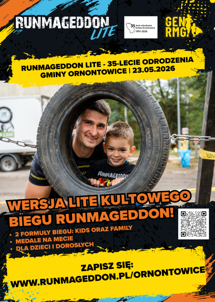 Już 23 maja 2026 roku zapraszamy was na wyjątkowe wydarzenie – Runmageddon Lite, organizowany z okazji 35-lecia odrodzenia Gminy Ornontowice!